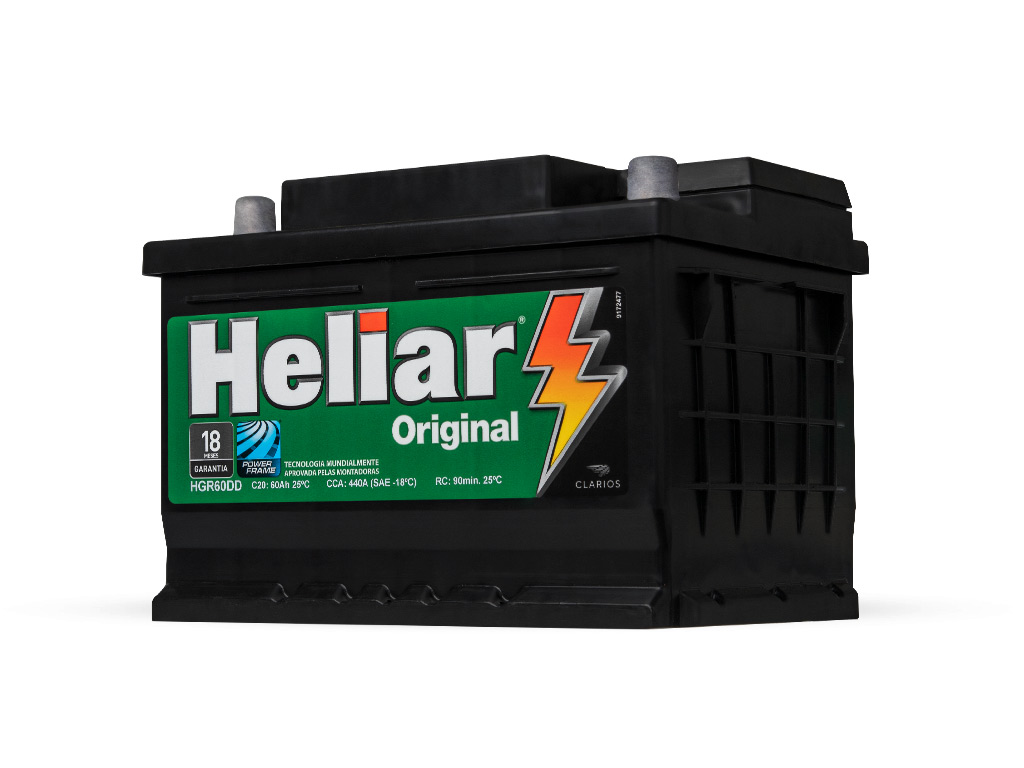 A Bateria Heliar é aprovada mundialmente pelas montadoras. Possui tecnologia PowerFrame, com maior resistência à corrosão, e corrente de arranque a frio (CCA). Além disso, tem 18 meses de garantia, com a tecnologia mais avançada do mercado. O produto é recomendado para veículos automotivos.